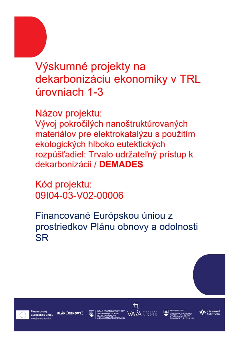 V inovatívnom elektrotechnickom laboratóriu bude propagovaný výskum pokročilých nanoštruktúrovaných elektrokatalyzátorov na výrobu zeleného vodíka z roztokov na báze vody vyvíjaných vďaka Výskumnému projektu na dekarbonizáciu ekonomiky v TRL úrovniach 1-3 financovanému Európskou úniou z prostriedkov Plánu obnovy a odolnosti SR –DEMADES – 09I04-03-V02-00006: Vývoj pokročilých nanoštruktúrovaných materiálov pre elektrokatalýzu s použitím ekologických hlboko eutektických rozpúšťadiel, ktorý nesie víziu čistejšej a udržateľnejšej energetickej budúcnosti.